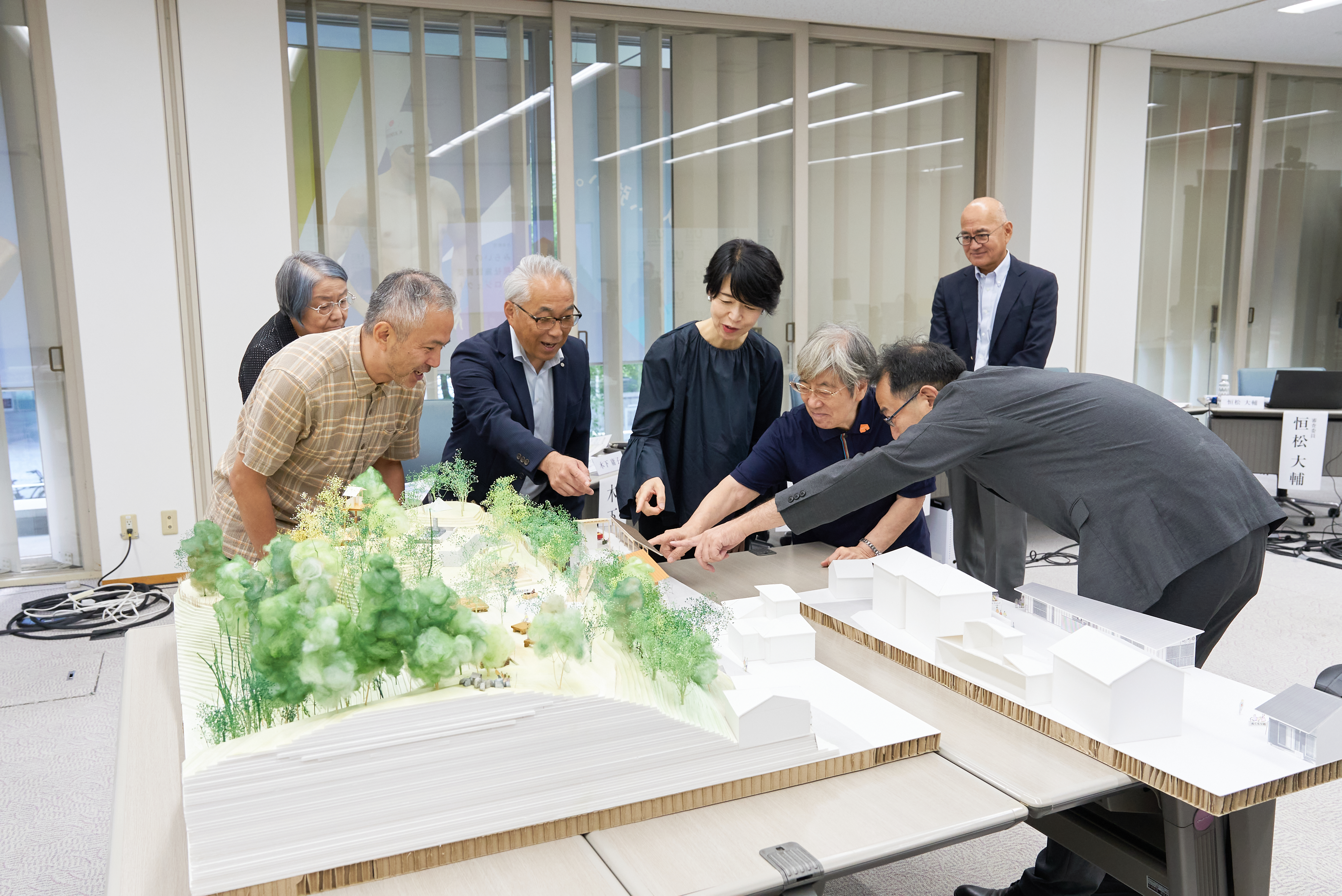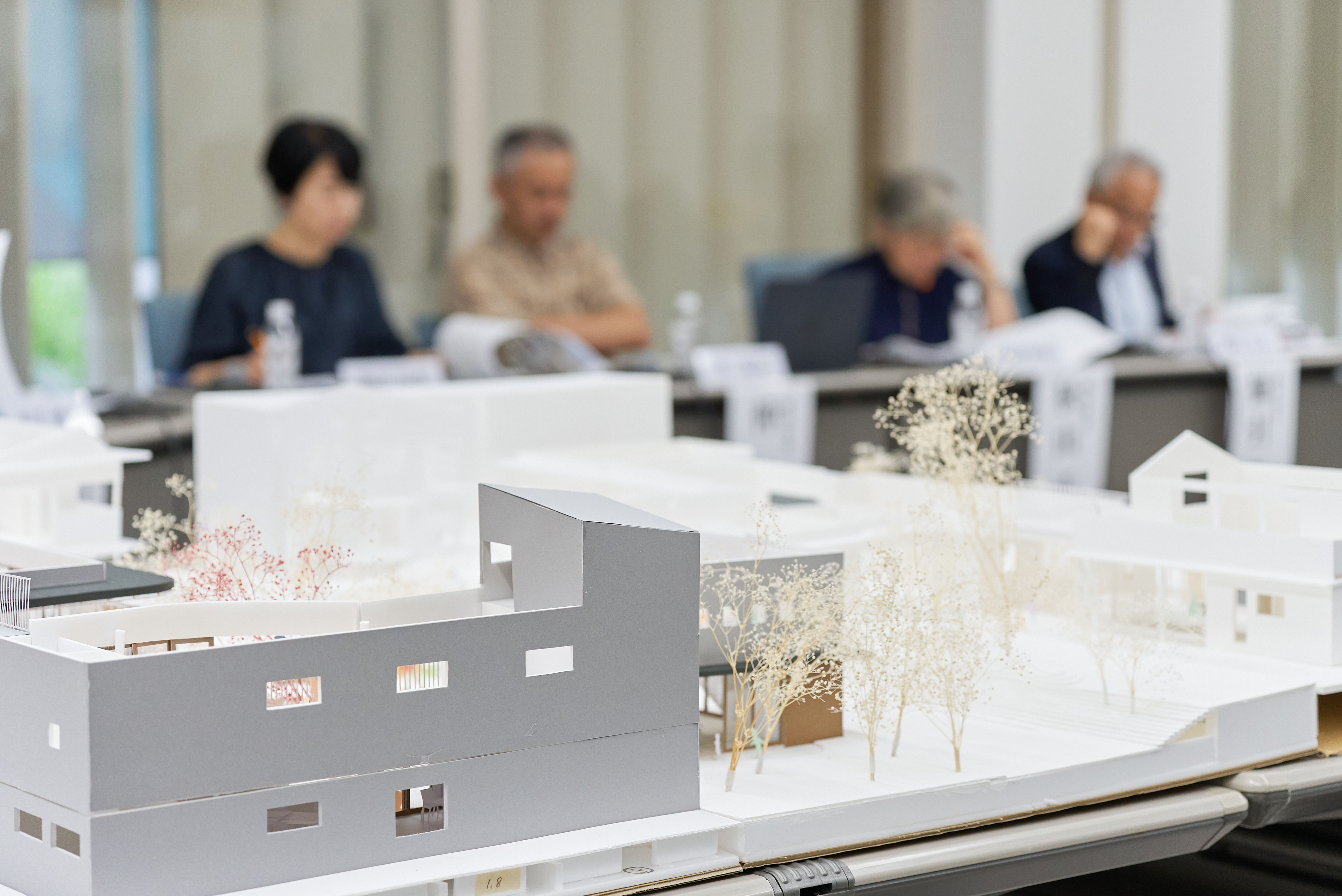 審査会では各事業者によるプレゼンテーションのあと、質疑応答が行われました。第5回はそれぞれの時間配分を見直し、質疑応答の時間を拡充。審査委員が模型を確認したのちに、設計の意図や経緯などを質疑で掘り下げ、プロジェクトの強度を確かめました。